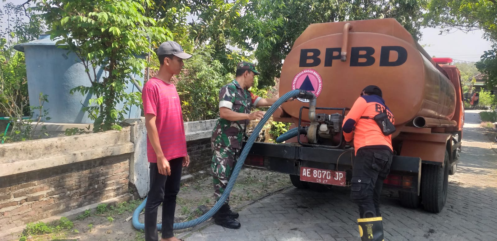NGAWI, Liputan12.com– Dalam upaya mengatasi kekeringan yang melanda wilayahnya, Babinsa Posramil Pitu bersama Badan Penanggulangan Bencana Daerah (BPBD) Kabupaten Ngawi telah melaksanakan penyaluran bantuan air bersih ke Desa Cantel, Kecamatan Pitu, Kabupaten Ngawi. Kegiatan ini dilakukan dengan menggunakan truk tangki berkapasitas 5000 liter, sebagai respons terhadap kebutuhan mendesak warga yang mengalami kekurangan air. Senin (16/09/2024).
